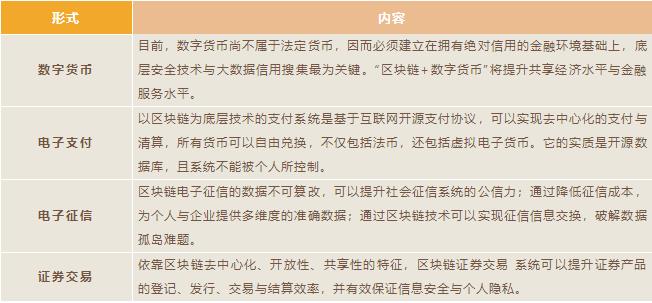 區(qū)塊鏈在金融領(lǐng)域的技術(shù)結(jié)合目前相對(duì)其它產(chǎn)業(yè)較為成熟?!皡^(qū)塊鏈+”作為金融科技的底層技術(shù)架構(gòu),可以通過多種形式改變以至重塑金融業(yè)運(yùn)行模式,主要包括以下幾個(gè)方面