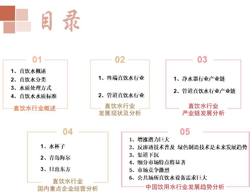 直飲水行業(yè)一般可分為終端直飲水(如家用凈水器)和管道直飲水。