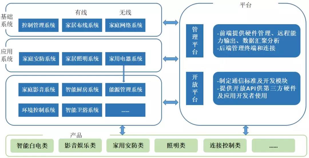 智能家居平臺的概念與Facebook、蘋果App應(yīng)用商店類似,智能家居平臺商制定通信標(biāo)準(zhǔn)及開發(fā)模塊等,然后提供開放API(應(yīng)用程序編程接口)供第三方硬件及應(yīng)用開發(fā)者使用,所有的硬件及應(yīng)用產(chǎn)品就可以無縫連接至平臺操作系統(tǒng),進而平臺商、第三方硬件及應(yīng)用開發(fā)者、用戶構(gòu)成一個全新的智能家居平臺生態(tài)鏈。目前國內(nèi)市場上活躍度比較高的有青島海爾家居集成股份有限公司、全智慧科技(北京)有限公司、美的集團股份有限公司(公開A股)、小米科技有限責(zé)任公司、深圳市電陶思創(chuàng)科技有限公司、北京京東世紀(jì)貿(mào)易有限公司、北京百度網(wǎng)訊科技有限公司、阿里巴巴(中國)有限公司等8家企業(yè)。