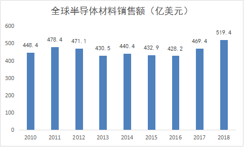 SEMI數(shù)據(jù)顯示,2018年全球半導(dǎo)體材料市場銷售額約519.4億美元,其中制造材料銷售額約322億美元,封裝材料銷售額約197億美元。在整個(gè)電子信息產(chǎn)業(yè)中,半導(dǎo)體材料的產(chǎn)值雖不能算極高,但卻具有極大的附加值和特有的產(chǎn)業(yè)生態(tài)支撐作用,半導(dǎo)體材料的自主可控關(guān)乎整個(gè)電子信息產(chǎn)業(yè)生態(tài)安全。