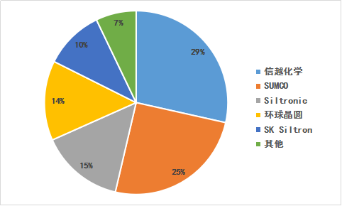 從全球來看,硅材料具有高壟斷性,全球一半以上的半導(dǎo)體硅材料產(chǎn)能集中在日本,尤其是隨著尺寸越大、壟斷情況就越嚴(yán)重。2018年,全球前五大半導(dǎo)體硅片廠份額近92%,其中Shin-Etsu(信越化工)、Sumco、Siltronic、Global Wafers(環(huán)球晶圓)與SK Siltron分別占比為28.50%、25.15%、14.69%、14.04%、10.50%。國內(nèi)硅片材料重點(diǎn)企業(yè)包括硅產(chǎn)業(yè)/上海新昇、中環(huán)股份、有研新材等。