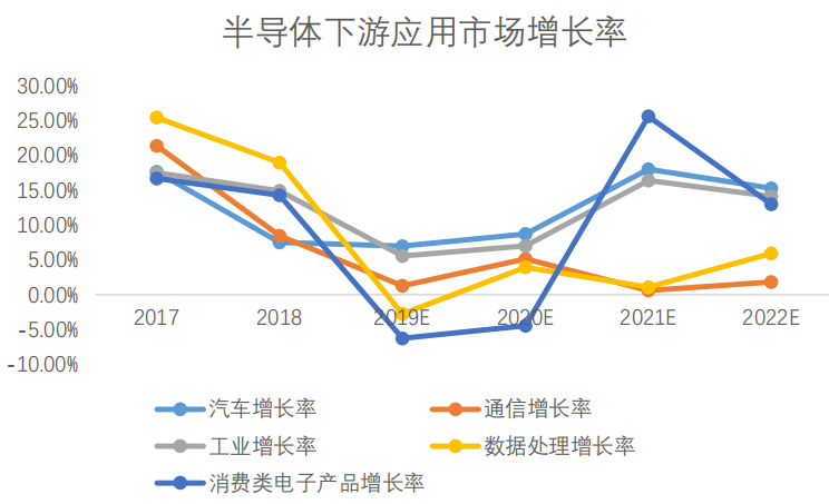 圖表13 半導(dǎo)體不同應(yīng)用市場增長率情況