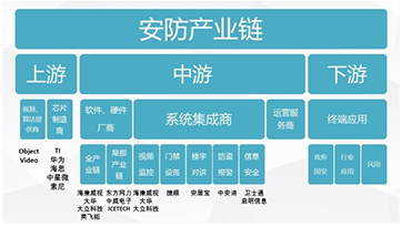 我國(guó)真正意義上的安防產(chǎn)業(yè)興起于20世紀(jì)80年代,歷經(jīng)30逾年的積淀,已形成較為完整的產(chǎn)業(yè)鏈。即“上游零部件供應(yīng)商—中游軟硬件供應(yīng)商、系統(tǒng)集成商、運(yùn)營(yíng)服務(wù)商和經(jīng)銷(xiāo)商—下游的終端用戶(hù)。