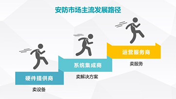 對(duì)比國(guó)外市場(chǎng),我國(guó)安防運(yùn)營(yíng)服務(wù)規(guī)模占比顯著偏低,將成為廠(chǎng)商未來(lái)布局的重點(diǎn)。因此要加快運(yùn)營(yíng)服務(wù)市場(chǎng)發(fā)展步伐。安防運(yùn)營(yíng)服務(wù)是安防產(chǎn)業(yè)的重中之重,是全球安防產(chǎn)業(yè)未來(lái)發(fā)展的趨勢(shì)。在技術(shù)升級(jí)、產(chǎn)品同質(zhì)化和成本的降低的背景下,產(chǎn)品市場(chǎng)的利潤(rùn)空間逐漸被壓縮,從硬件提供商(賣(mài)設(shè)備)——系統(tǒng)集成商(賣(mài)解決方案)——運(yùn)營(yíng)服務(wù)商(賣(mài)服務(wù))已成為主流發(fā)展路徑。