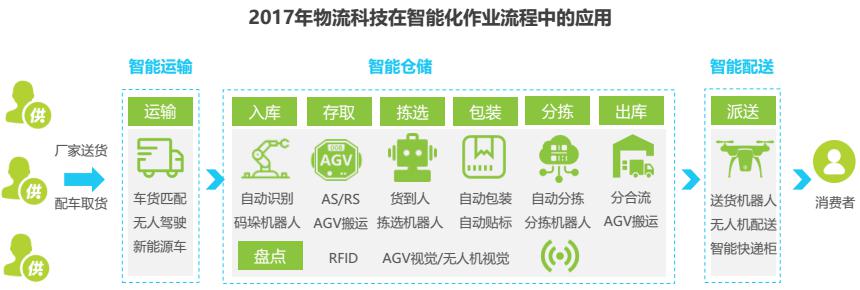 “互聯(lián)網(wǎng)+高效物流”已被列入“互聯(lián)網(wǎng)行動計劃當中”。大數(shù)據(jù)、云計算、物聯(lián)網(wǎng)、人工智能技術(shù)的成熟發(fā)展,可以對物流各環(huán)節(jié)進行信息化、高效率的管理,提高運輸、配送效率、減少損耗,并可指導生產(chǎn)制造,為顧客提供更好的服務體驗,推動物流供應鏈智慧化升級。
