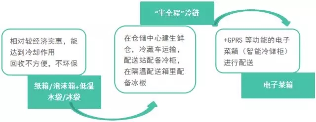 目前國內有三種冷鏈配送方式,占比最大的是第一種。相比國外的冷鏈配送,中國冷鏈配送還不夠完善,也非真正的全程冷鏈,容易造成生鮮的損耗高的問題,用戶體驗差,冷鏈配送未來擁有較大完善空間。
