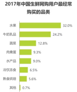 3、生鮮網購仍以水果為主品類,高頻剛需引流作用明顯。