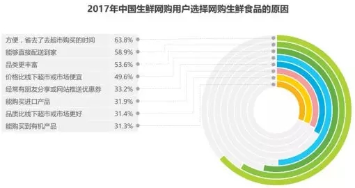 方便是用戶網購生鮮食品的主要原因,能夠直接配送到家、品類豐富對用戶有較大的吸引力。