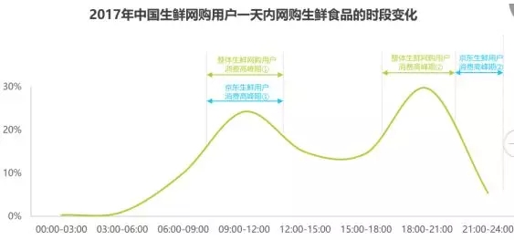 18:00-21:00是生鮮食品的消費集中段,用戶根據需求的即時性選擇不同的平臺購買生鮮食品。