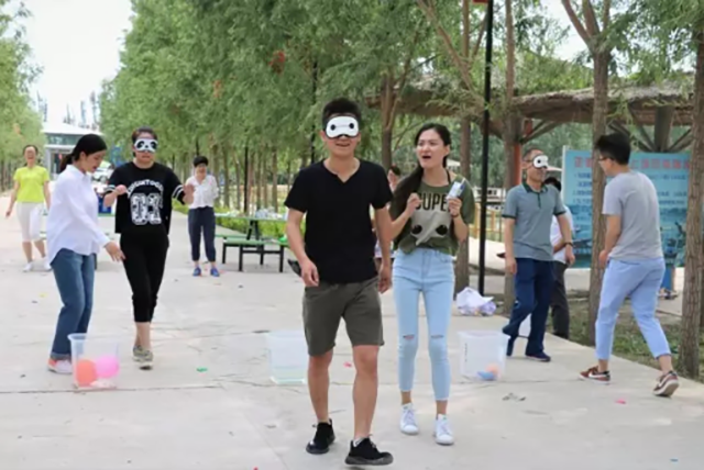仙人指路比賽中,一人戴上眼罩,在隊友的指示下,奮力往前沖,需要的不僅是“你與我”的互相合作,更是對隊友的絕對信任,是團隊默契與協(xié)作的完全展現(xiàn);