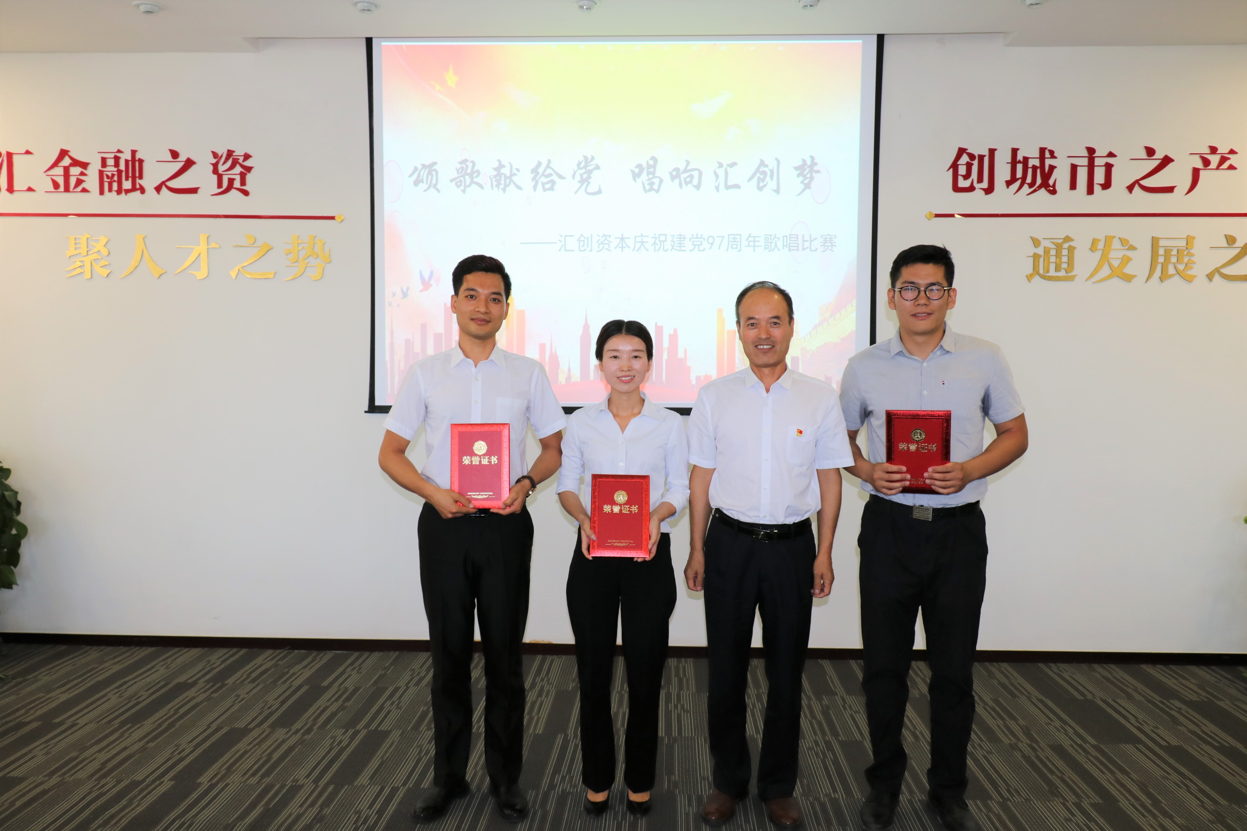 為隆重紀念中國共產黨成立97周年,謳歌黨的豐功偉績,激發(fā)公司全體黨員和員工愛黨、愛國、愛匯創(chuàng)的熱情,6月28日,匯創(chuàng)資本舉辦了主題為“頌歌獻給黨 唱響匯創(chuàng)夢”的慶祝建黨97周年歌唱比賽,以奮發(fā)進取、昂揚向上的精神風貌向黨的生日獻禮。